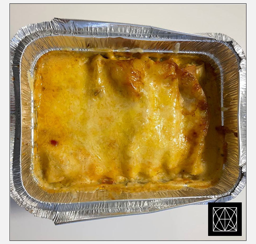 „Cannelloni“ makaronai įdaryti vištiena, užkepti kietuoju sūriu „Grana Padana“