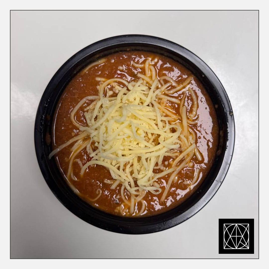 produkto kiekis: „Chilli con carne“ sriuba, skaninta parmezano sūriu