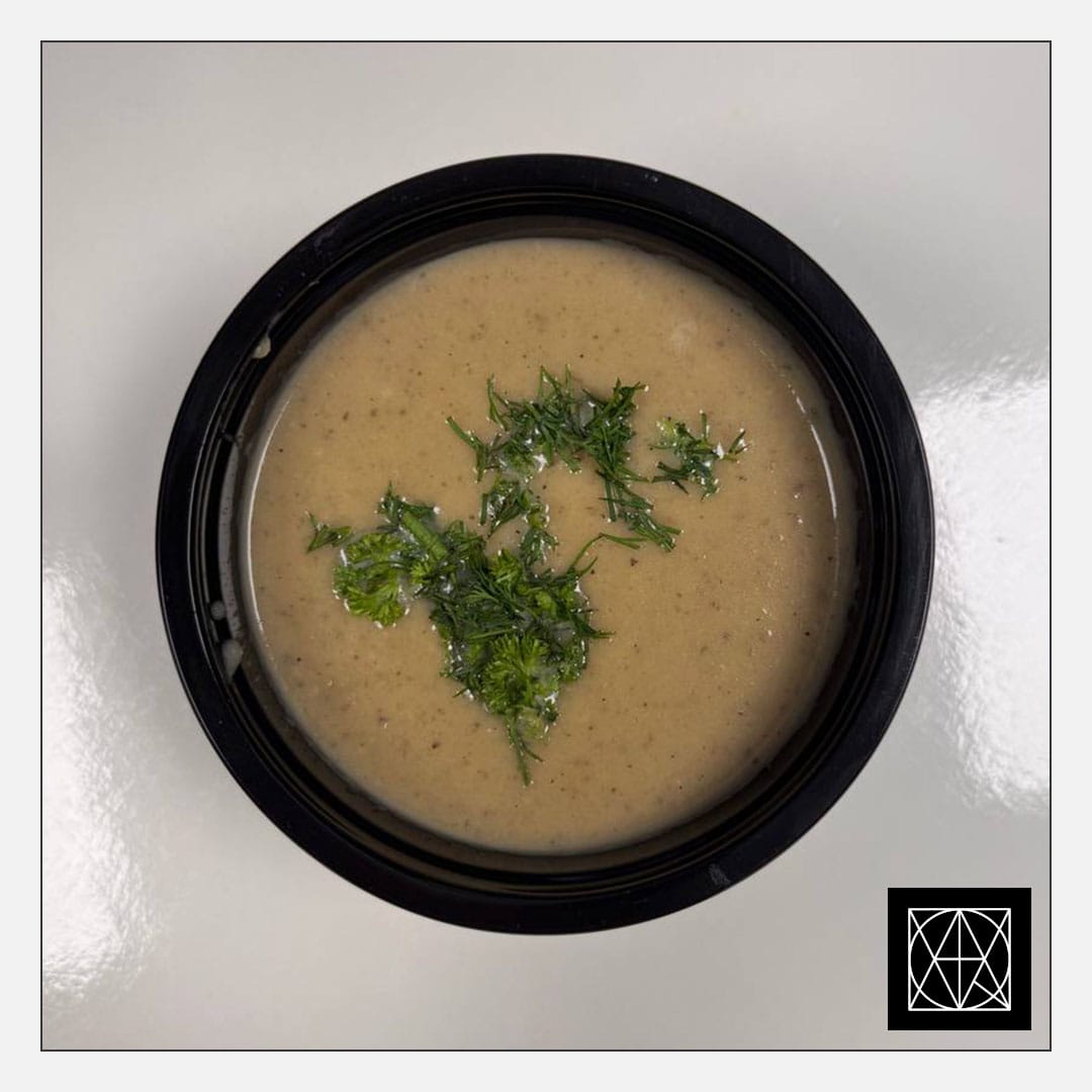 produkto kiekis: Kreminė sriuba su daržovėmis (salierais, keptais grybais, pastarnokais, svogūnais ir česnaku)