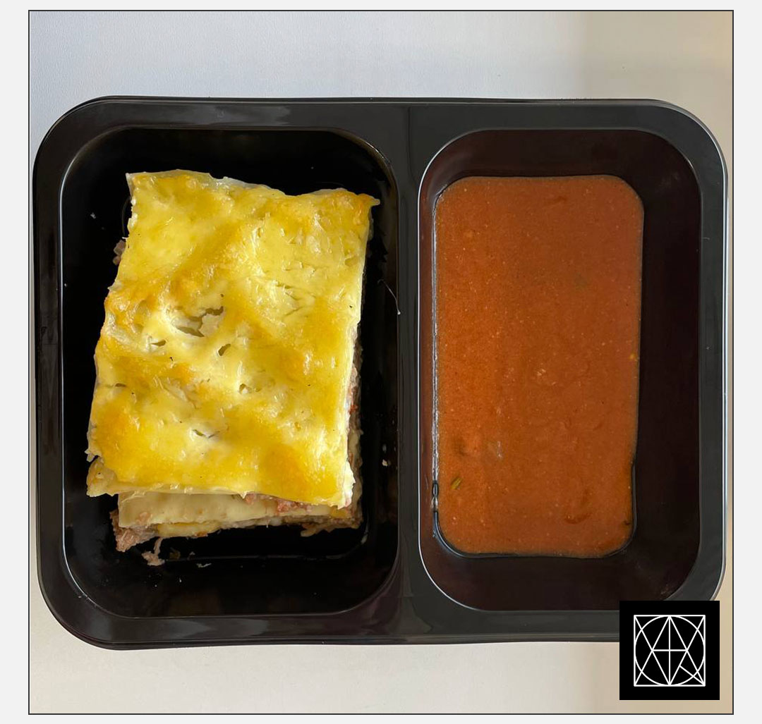 produkto kiekis: Lazanija su vištiena, gardinta paprikomis ir pomidorais, užkepta kietuoju sūriu, pateikiama su pikantišku padažu