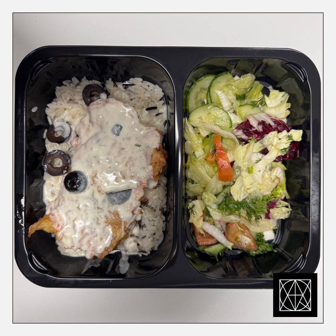 produkto kiekis: Ledjūrio menkė su alyvuogių tapenada, pateikiama su laukiniais ryžiais ir šviežiomis salotomis
