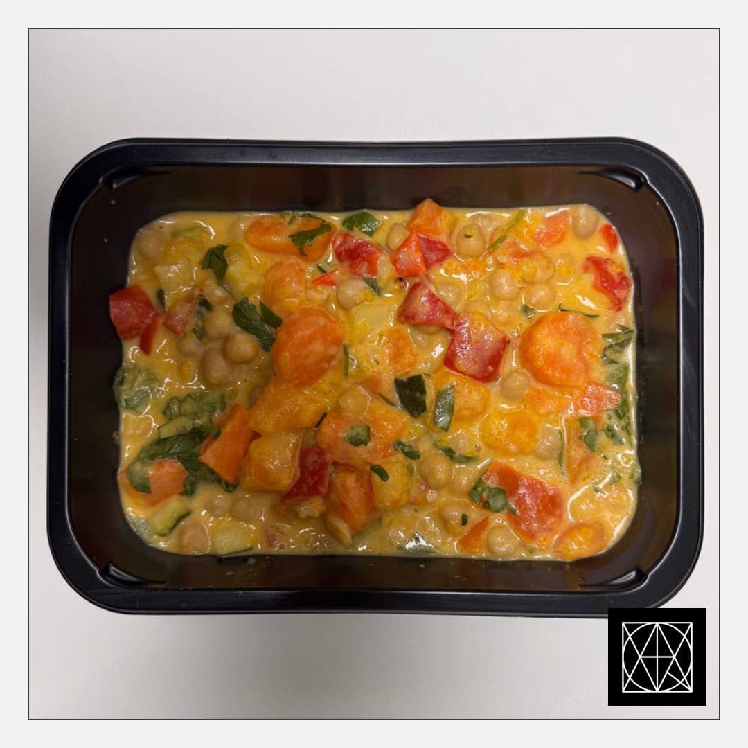 produkto kiekis: Marokietiškas avinžirnių troškinys su morkomis, moliūgais ir paprikomis, gardintas petražolėmis ir kokosų pienu