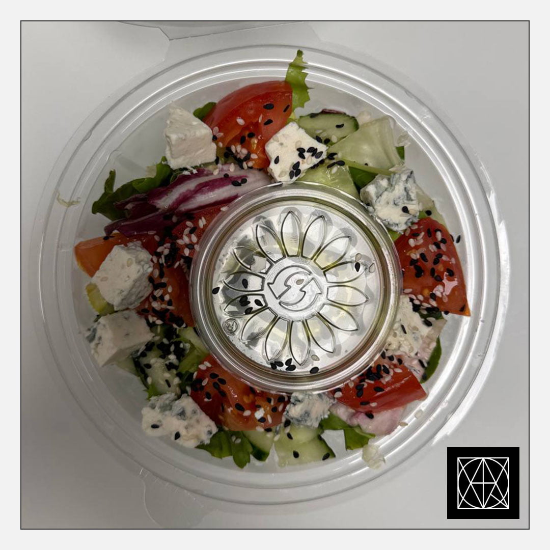 Salotos su gorgoncola sūriu ir sezoniniais vaisiais, pagardintos naminiu pesto padažu
