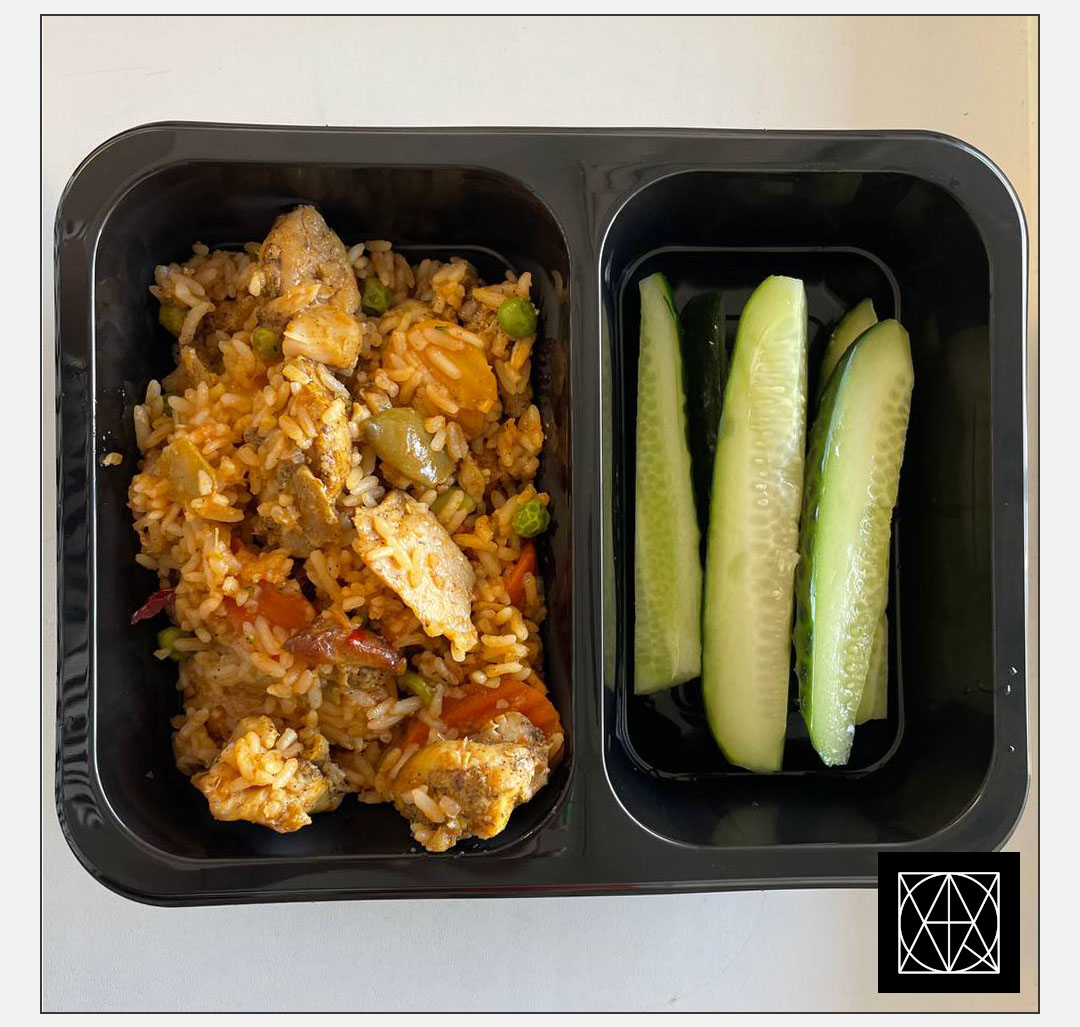 Vištienos plovas „Papa dalai“, pateikiamas su šviežiai raugintais agurkais